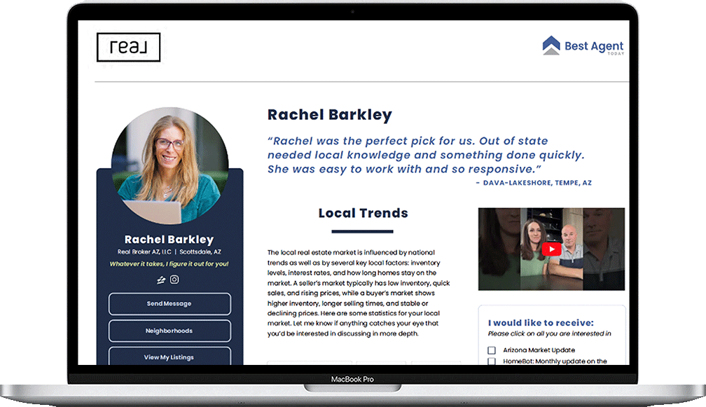 Your Best Agent Today digital profile is the “engagement hub” for consumers to learn why you’re the local real estate expert.